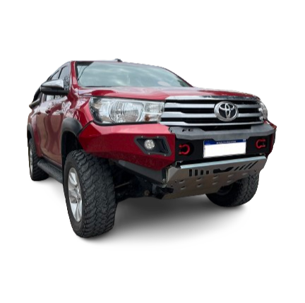 Bumper para uso OFF-ROAD, pintado con sistema electrostático termoconvertible de alta resistencia. El diseño copia las líneas originales del vehículo evitando salientes. Los portagrilletes son retráctiles.