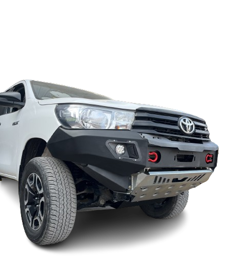 Bumper para uso OFF-ROAD, pintado con sistema electrostático termoconvertible de alta resistencia. El diseño copia las líneas originales del vehículo evitando salientes. Los portagrilletes son retráctiles.